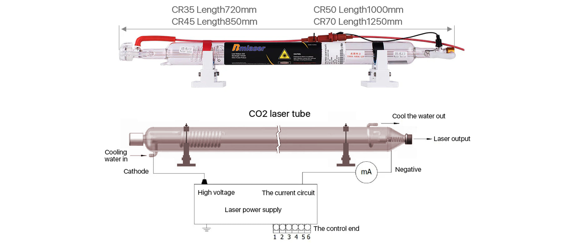 BMLaser Bundle For Sale 60W Metal Head Co2 Laser Tube + 80W 115V Laser Power Supply